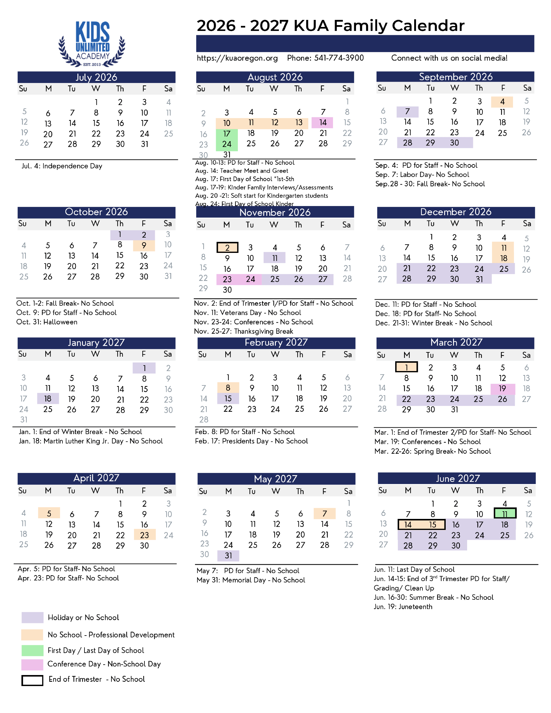 We can’t speak highly enough of our year-round academic calendar, which is overwhelmingly supported by our families. KUA in 2021 become Oregon’s first year-round public school.