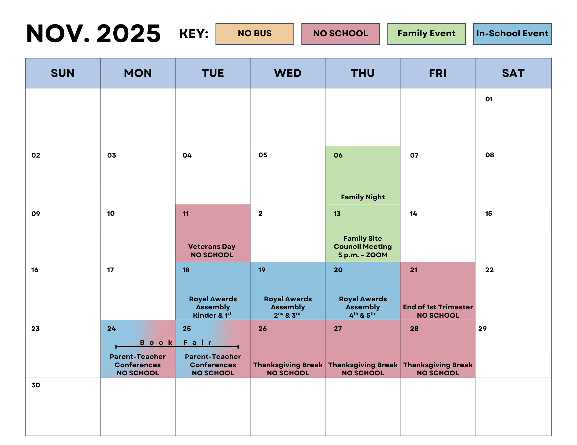 KUA will hold its first conferences of this academic year Nov. 24-25. Both are no-school days that immediately precede Thanksgiving break Nov. 26-28..